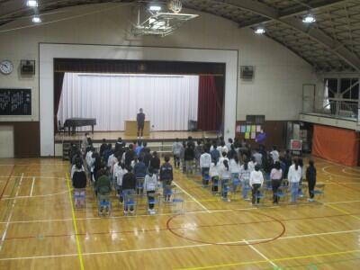 保護者の方々と、民生・児童委員の皆さんにお手伝いいただきました。社会科の学習です。体育館では、卒業式に参加する5年生が初回の練習を行いました。