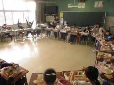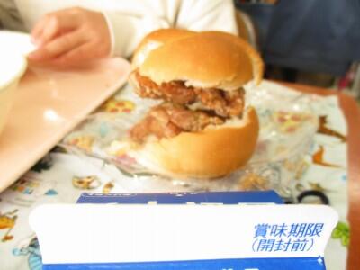 おいしかったー! おかわりをゲットして、チキンバーガーの子も。2学期最後の給食、クリスマスメニューでした。
