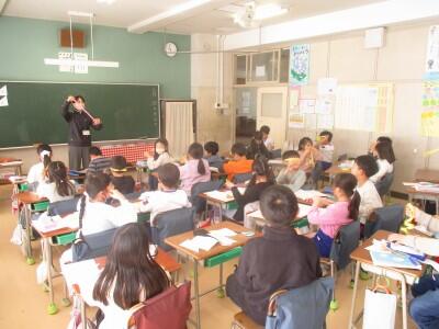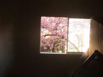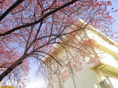 「半分にして2分の1」、を紙テープを半分に切りながらの勉強でした。2年生の教室から、音楽室、図書室へ、とんぼキッズ横の寒緋桜、ターザンの丘へ。